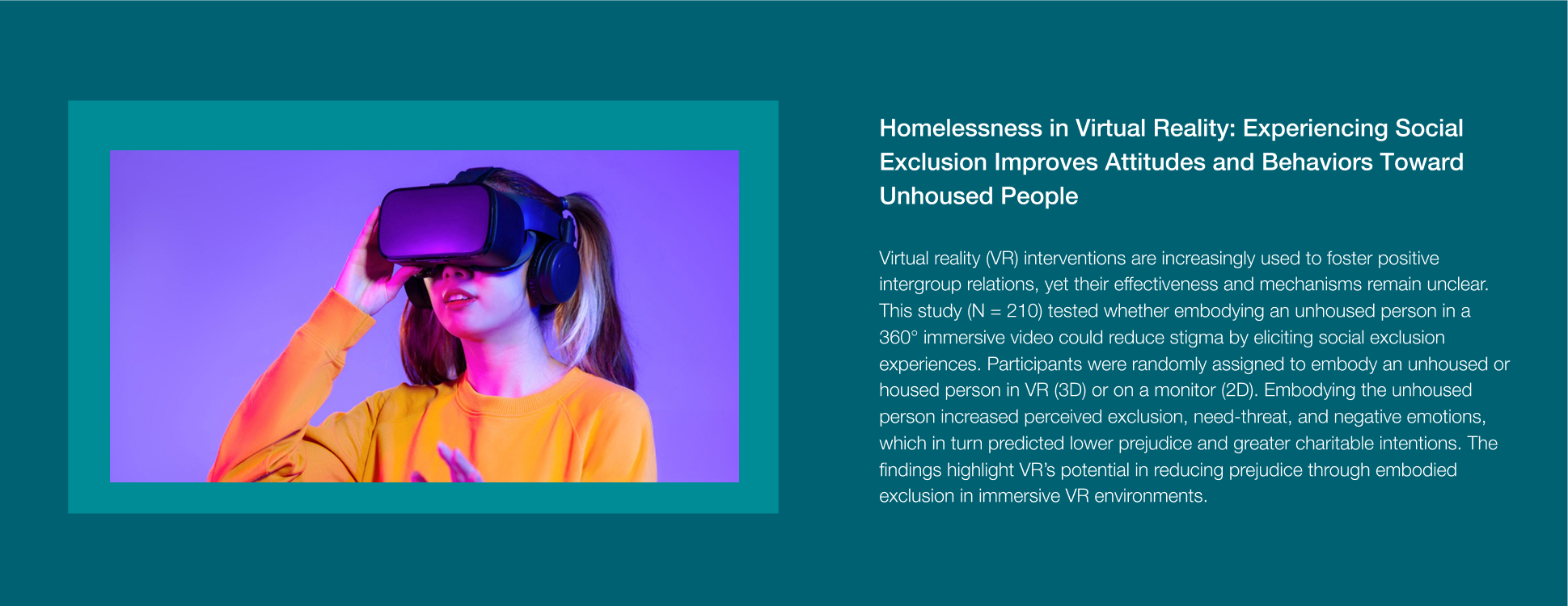 Our research examines the psychological impact of being ignored, rejected, or dehumanized, exploring how these experiences influence emotions, cognition, and social behavior.